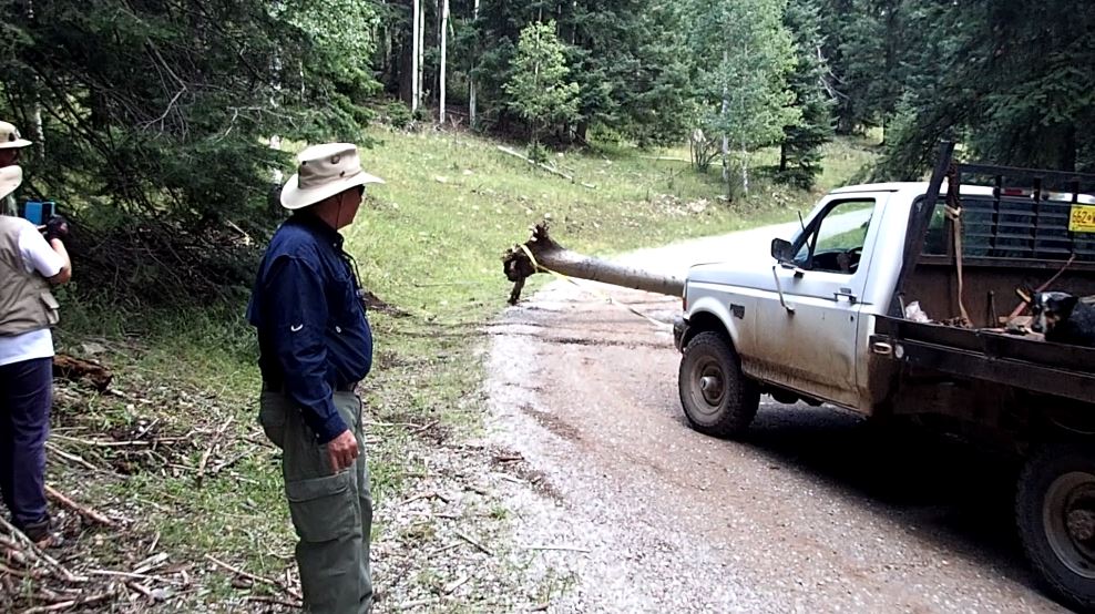 Click photo above for a video of 3 winches pulling the tree out of the way